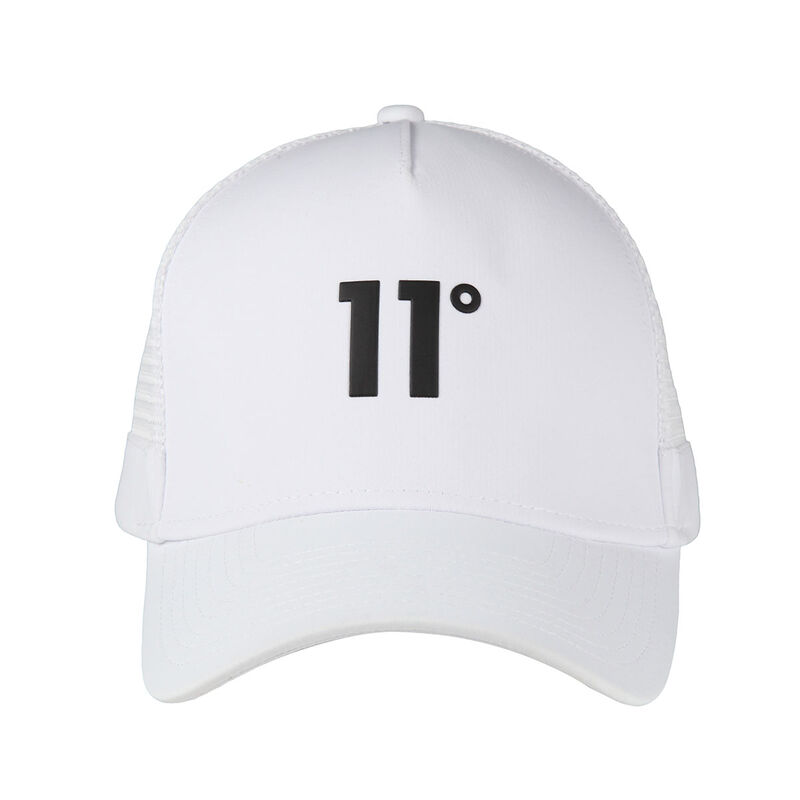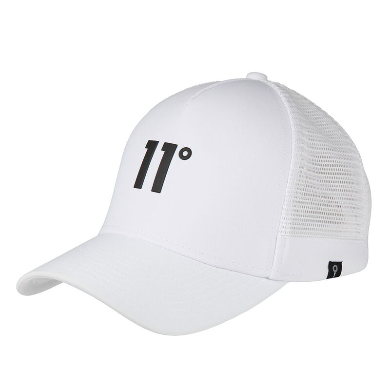 This trucker-style golf cap is enhanced with a mesh rear to enhance breathability and colling as you play the sport of golf. Designed to suit most head sizes with a snap closure system for easy adjustment. Highlighted with molded 11 degrees branding on the front and woven 11 degree golf label to the side for additional appeal.