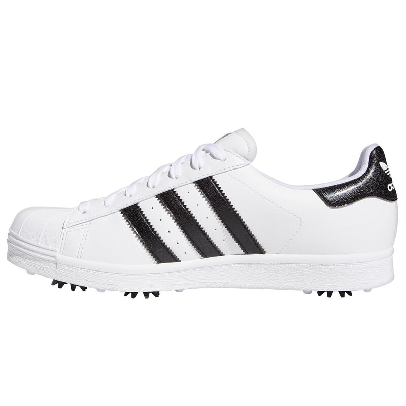 The adidas iconic Superstar shoe, now available for the greens and the fairways. It has a full-grain leather upper for comfort and soft feel, offering originality by being passed down through decades as the uniform of industry changemakers. The design features a rubber shell toe and has a six spike outsole configuration for stability and control.