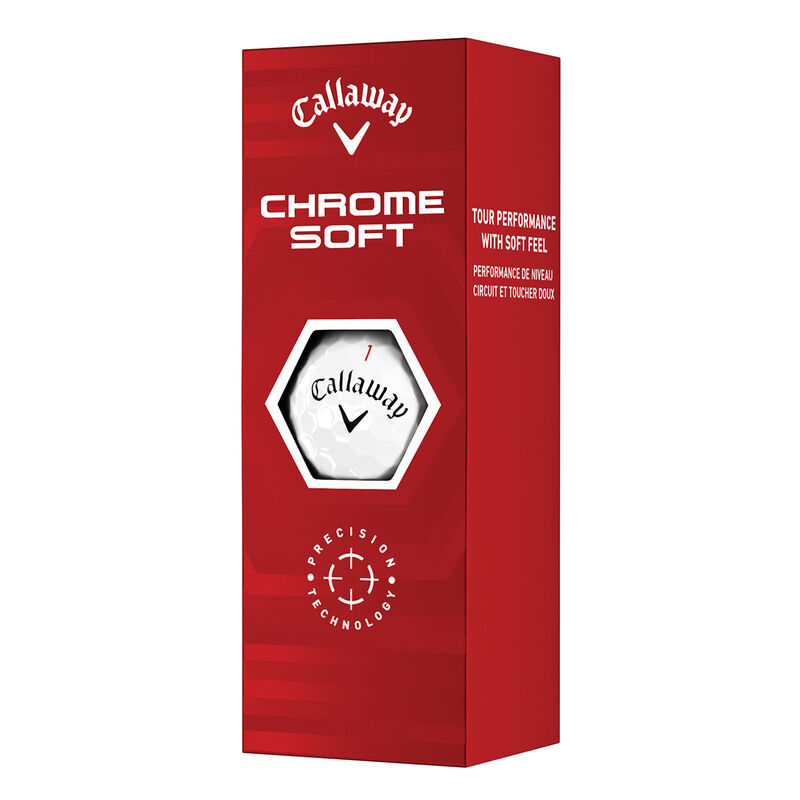 The new Chrome Soft is now even better with Precision Technology. Designed for the amateur to major players seeking more distance performance, forgiveness, and soft feel around the greens.
