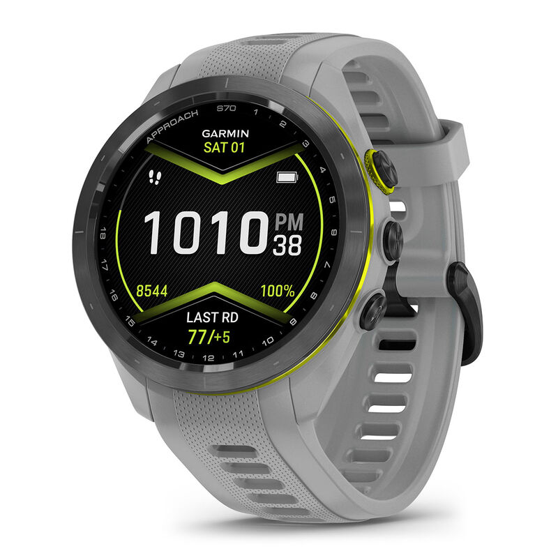 Fine-tune your performance on and off the course with the bright AMOLED display and premium golf features of the Garmin Approach S70 GPS smartwatch.