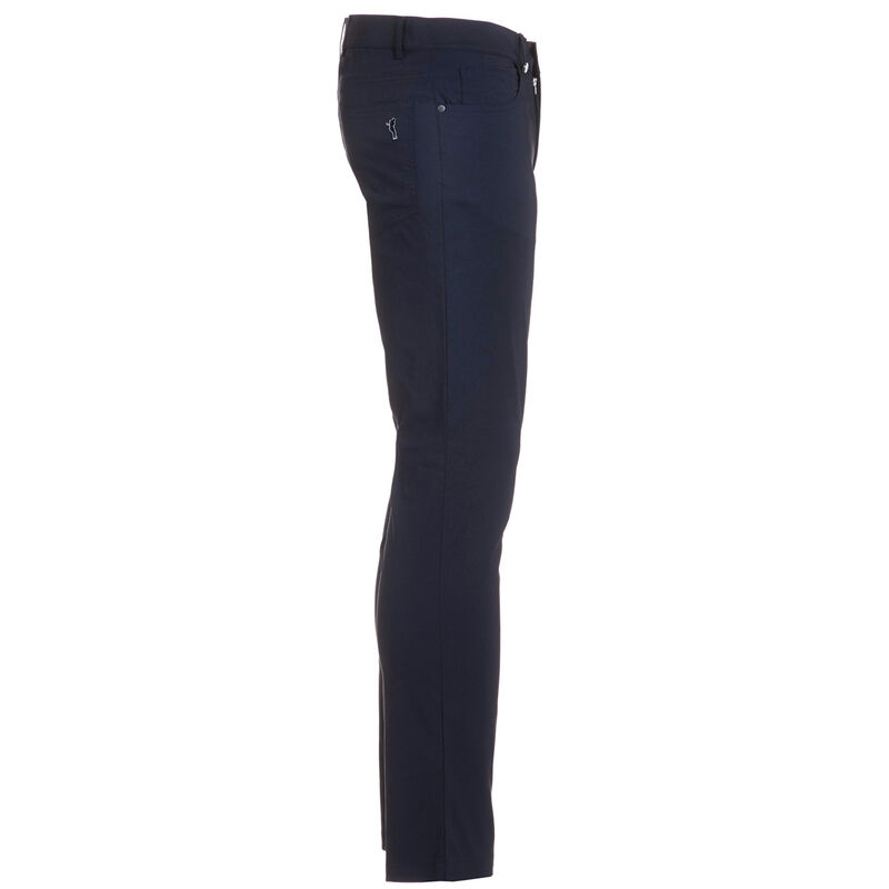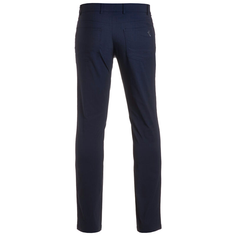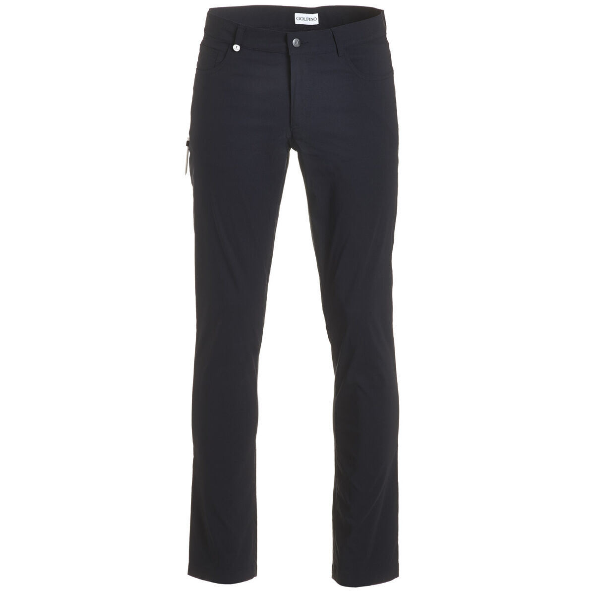 GOLFINO offers luxury styling for the golf course, designed with the highest quality and attention to detail. The trousers have a 4-way stretch to cope with all the demands of the golf game and are slim fitting for comfort as you perform. They offer UV protection and even on cold wintery days these brushed trousers insulate well against the cold and are breathable for optimum comfort. Designed with two pockets, a piped pocket, crystal ball marker and embroidered golfer logo with a metallic outline.