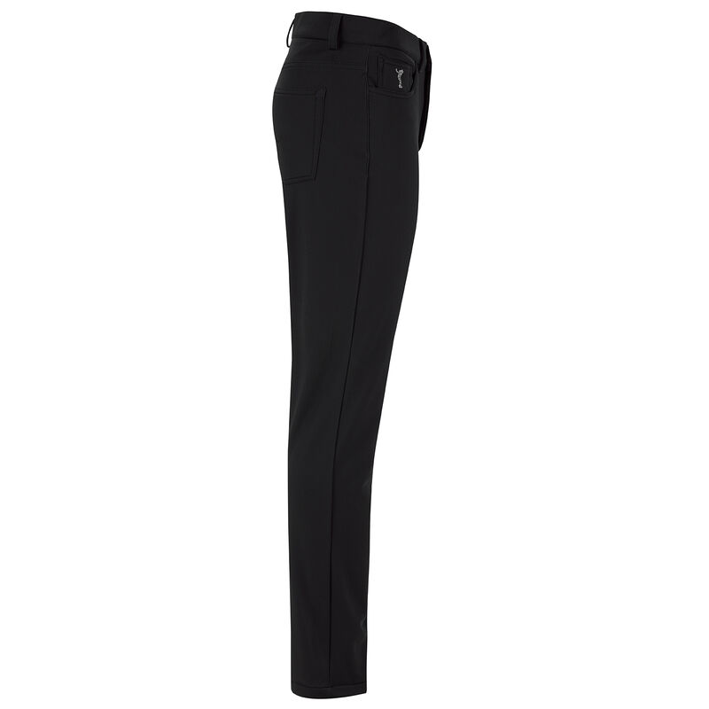 Ladies’ 7/8-length stretch trousers in slim fit for an elegant golf look on the fairway. The very high-quality golf trousers are extremely comfortable and pleasantly soft to the touch. The extremely elastic 4-way stretch material adapts with ease to your movement. As a result, the functional trousers are highly recommended for sophisticated golfers. In 5-pocket style with logo in crystal look and equipped with crystal ball marker.