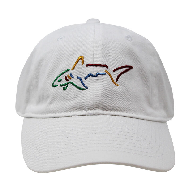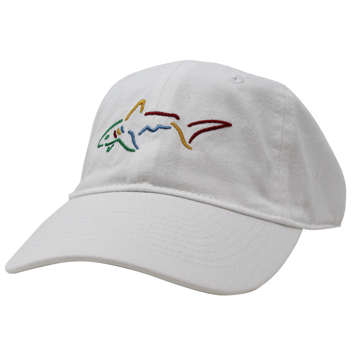 Greg Norman Mens White Embroidered Shark Logo Golf Cap