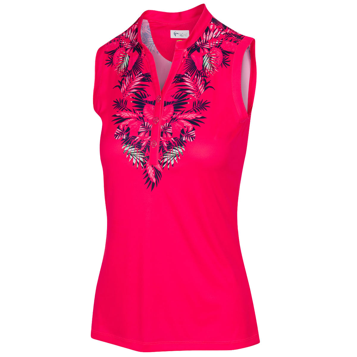This Greg Norman polo shirt features a sleeveless design with a Y-neck opening that is highlighted with an engineered tropical print and silver rim buttons. It has a lightweight and luxurious feel, combined with one of the leading moisture management systems PlayDry to keep you comfortable as you perform. Plus has an extreme 50+ UPF protection rating to keep you safe in the summer sun.