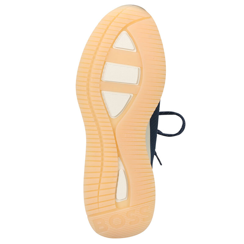 These premium trainers from BOSS are crafted from a structured-knit upper for breathable comfort with a contrast BOSS branding on the side panel, and back tab to match. Made from recycled materials including PET bottles, for a more sustainable option compared to conventional material, using a material that has already been produced. Complete with a lightweight midsole and a modern rubber outsole for traction, with BOSS details to assure a sporty look.