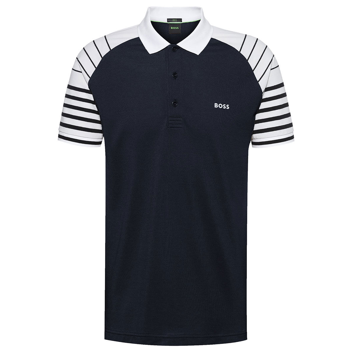 This exceptional S.Café® material polo shirt offers exceptional wearing comfort coupled with permanent performance benefits. Including breathability, moisture management, quick-drying functionality and reliable odour control. Designed with a slim fit with added stretch fabric for active comfort. Featuring a flat-knit collar and striped detailing to the sleeves, highlighted with BOSS branding on the left chest for maximum appeal.