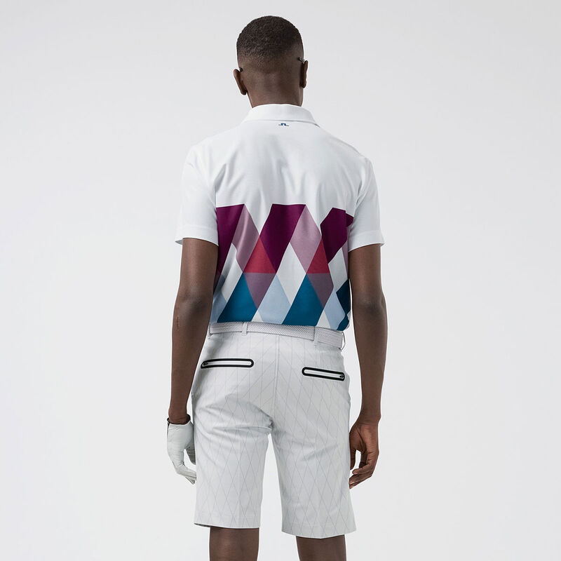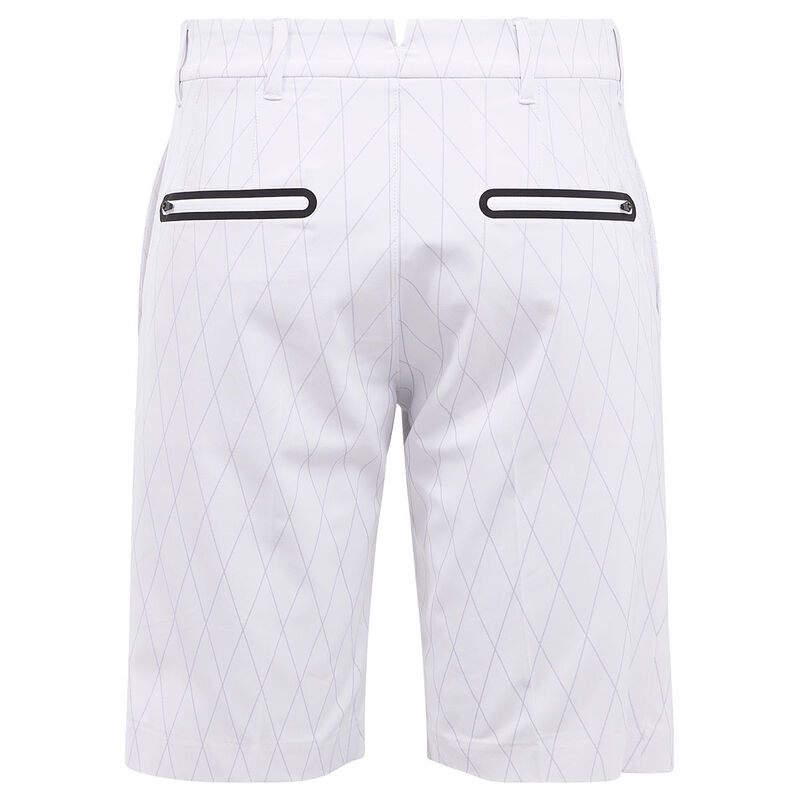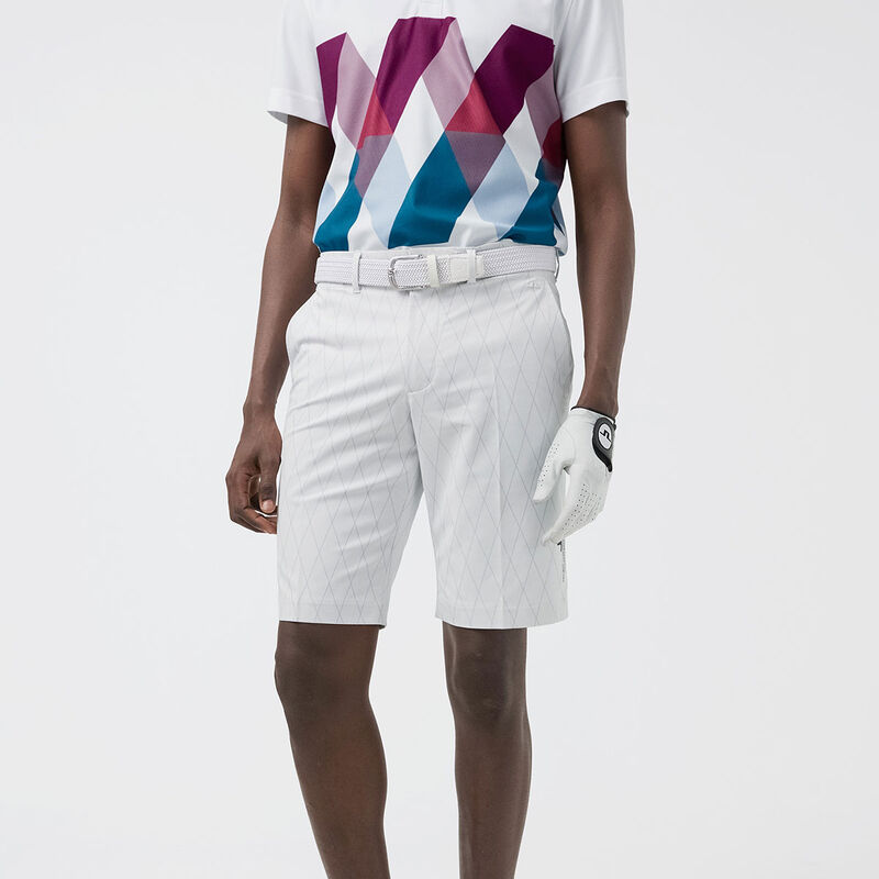 These argyle patterned golf shorts are designed with innovative fabrications to help you perform as you play the sport of golf. The shorts have a knee-length design and are constructed with a double weave fabric with an element of stretch to help you move more freely during the athletic movements associated with golf. They are lightweight, breathable, and fast-drying, plus are water-resistant to prevent any distractions during your golf game. Other features include front and back pockets, traditional closure, belt loops, highlighted with an embroidered J.Lindeberg bridge logo, and a seasonal logo at the knee.