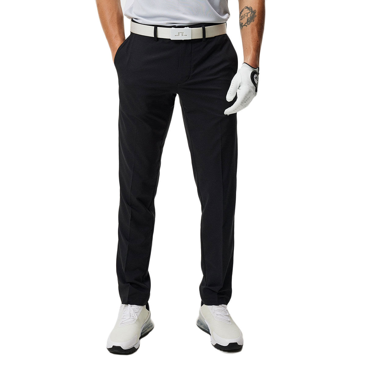 These extremely lightweight golf trousers are designed with innovative fabrications to help you perform as you play the sport of golf. The trousers are constructed with an element of stretch to help you move more freely during the athletic movements associated with golf. They are breathable, and fast drying, plus are water-resistant to prevent any distractions during your golf game. Other features include pockets, traditional closure, and belt loops, plus highlighted with a J.Lindeberg bridge logo for authenticity.