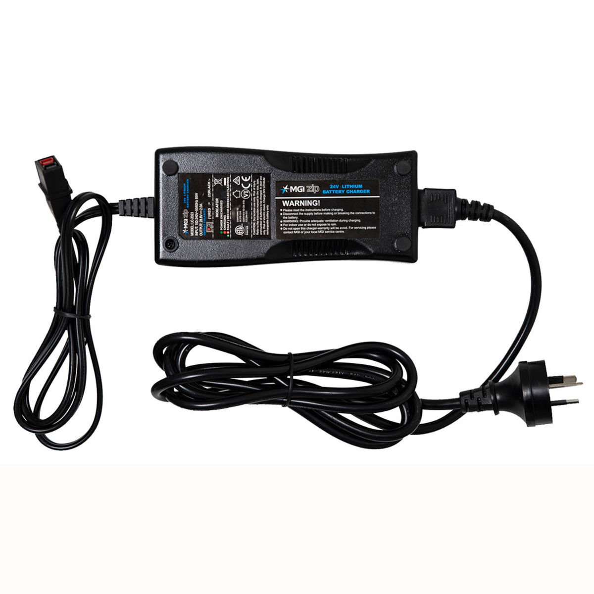 Keep your golf trolley rolling with this MGI battery charger, the perfect way to ensure your Zip Series 24v lithium battery is optimally charged before your game of golf.