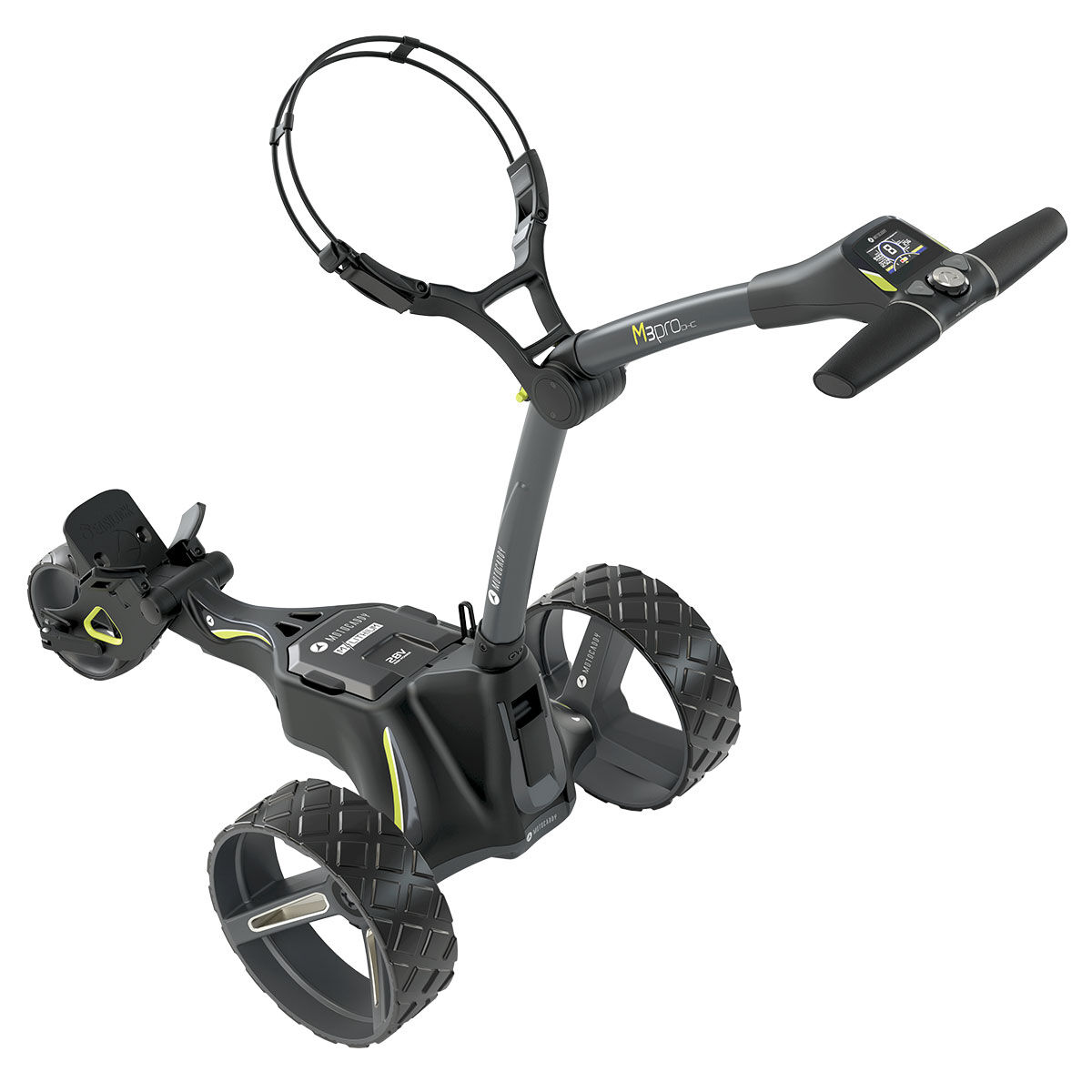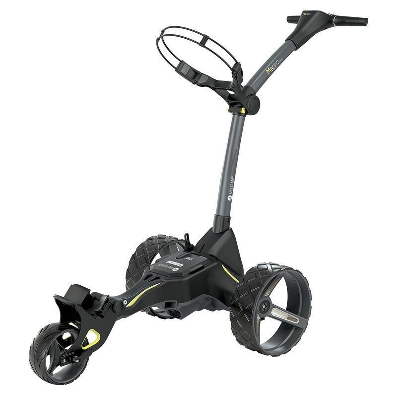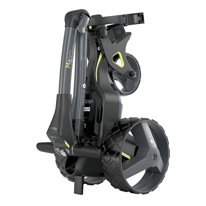 The M3 Pro DHC trolley offers total control on the golf course, with the world's simplest compact folding frame. It includes automatic downhill control, and an electronic parking brake. Fitted with all-terrain wheels which are perfect for golfing on courses with steep slopes to enable you to feel under control automatically.