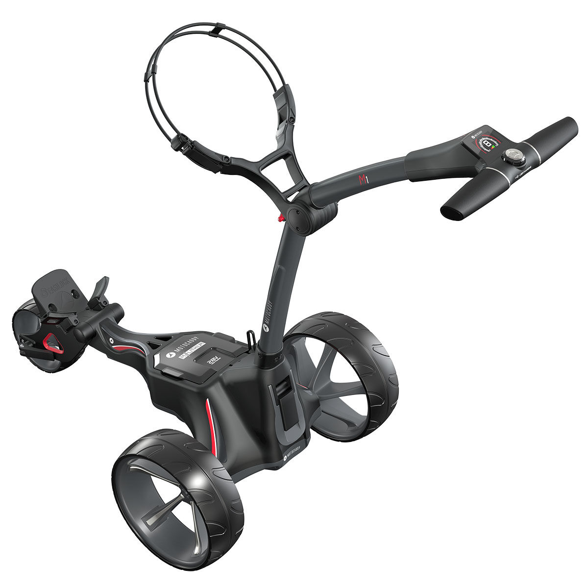The M1 trolley has one of the world's most simple compact folding frames. It includes new sports wheels, a widescreen display, and a USB charging port, with next-generation high-power 28-volt system to ensure you can complete your round of golf.