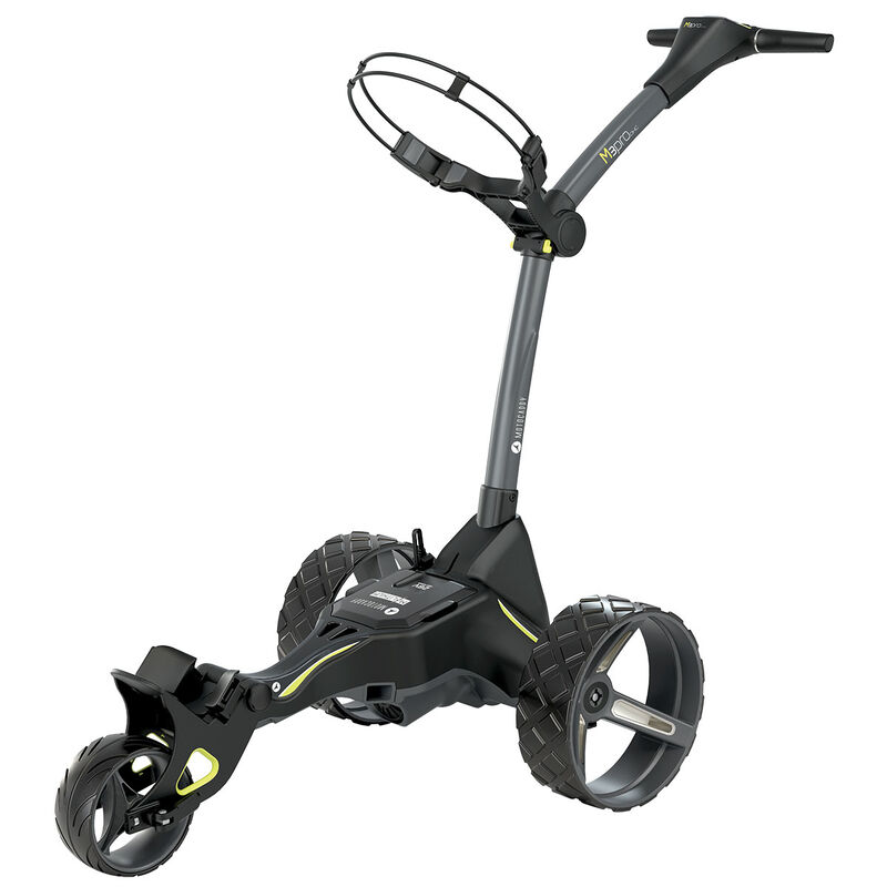 The M3 Pro trolley offers total control on the golf course, with the world's most compact folding frame that is 11% smaller than the previous model. It includes a USB charging port, 3 distance measurements, and a full-colour screen. It also adds automatic downhill control and an electronic parking brake. With all-terrain wheels which are perfect for golfing on courses with steep slopes to enable you to feel under control automatically.