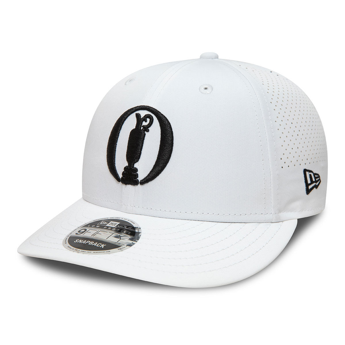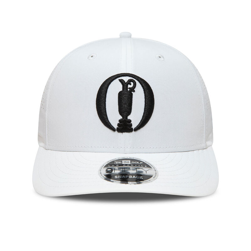 Step out in style with this premium quality golf cap, from leading headwear brand New Era. Designed with a performance construction to keep you comfortable, with perforated panels and embroidered eyelets for enhanced breathability. This cap is part of The Open range that is highlighted with a claret jug embroidered on the front for maximum appeal. Other details include a pre-curved bill and has a rear snapback closure strap for easy adjustability.