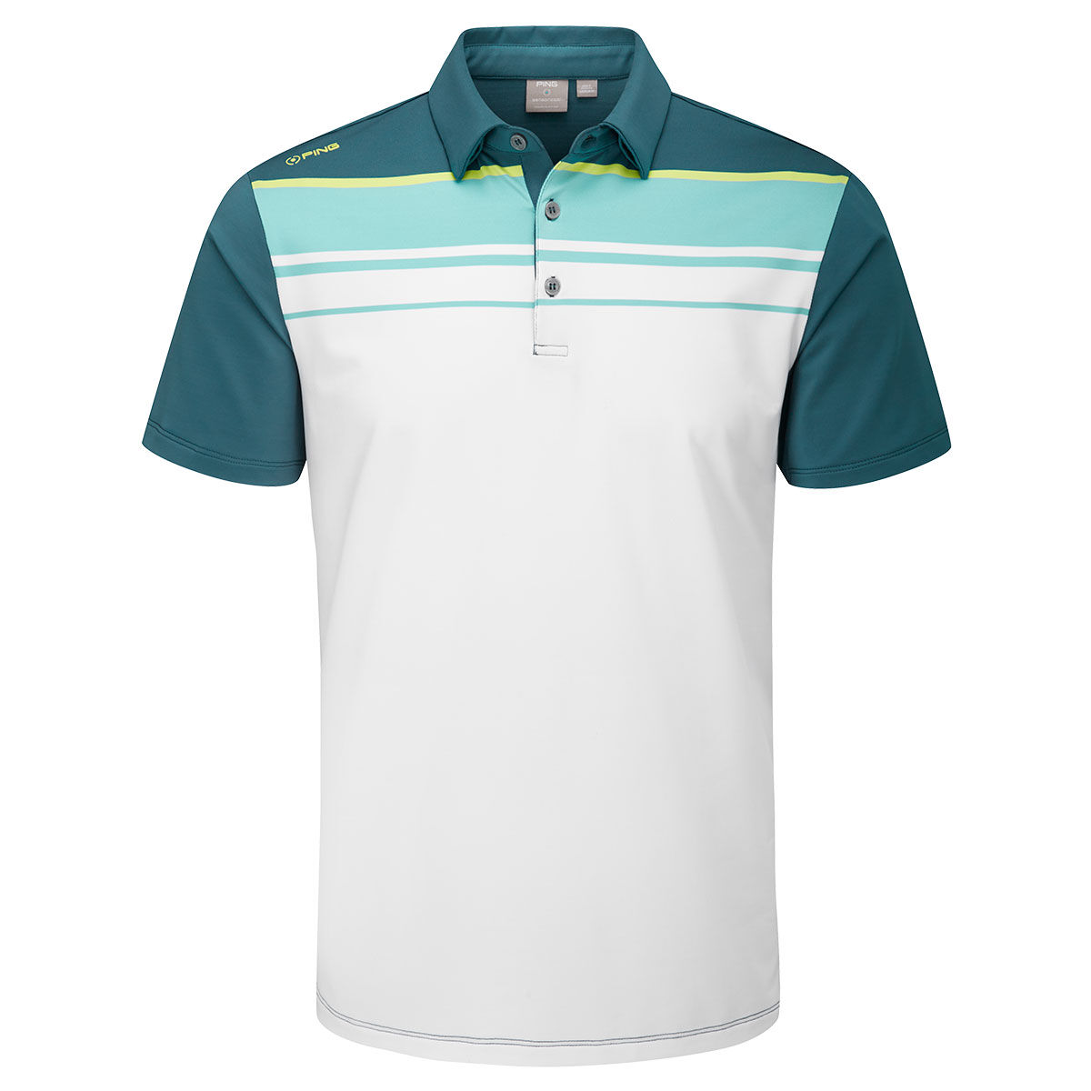 Ping Mens Green and White Comfortable Stripe Sinclair Dragonfly Golf Polo Shirt