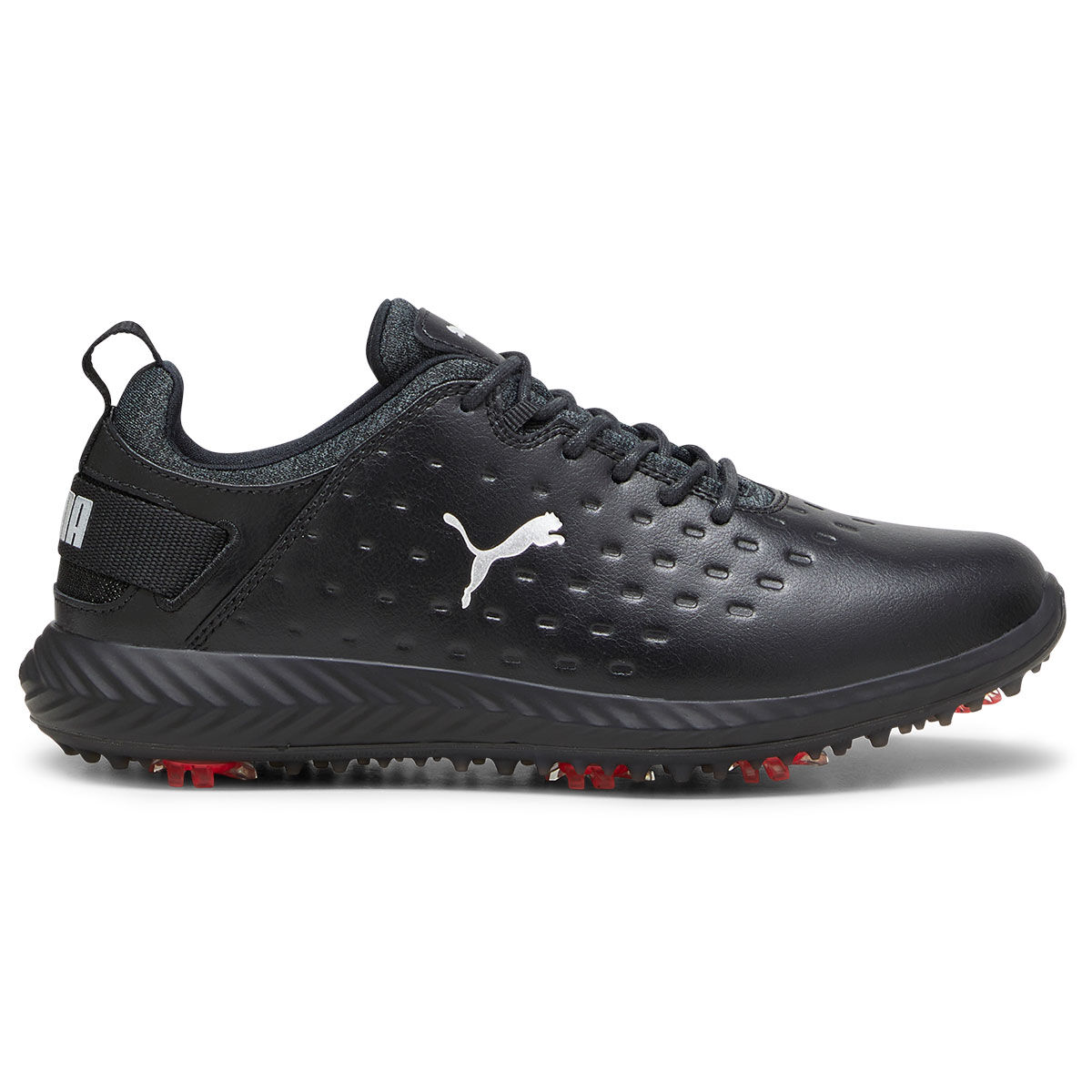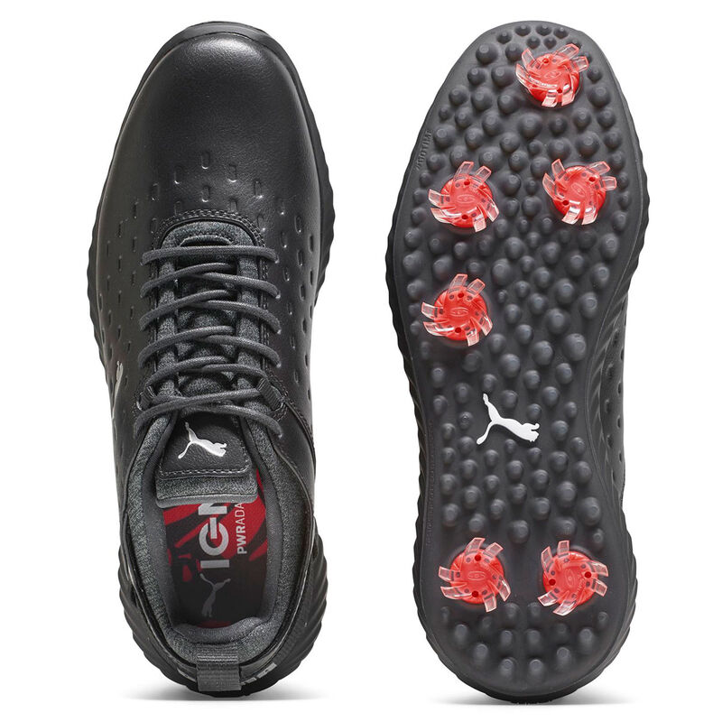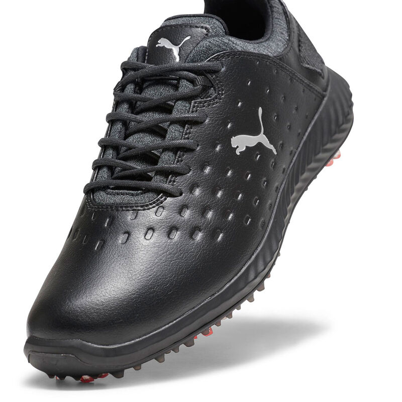 These PUMA Golf shoes have a premium full-grain leather upper that provides unrivalled waterproof protection. They have a hybrid bootie construction which replaces the traditional tongue for an improved all-around fit, comfort and support.
