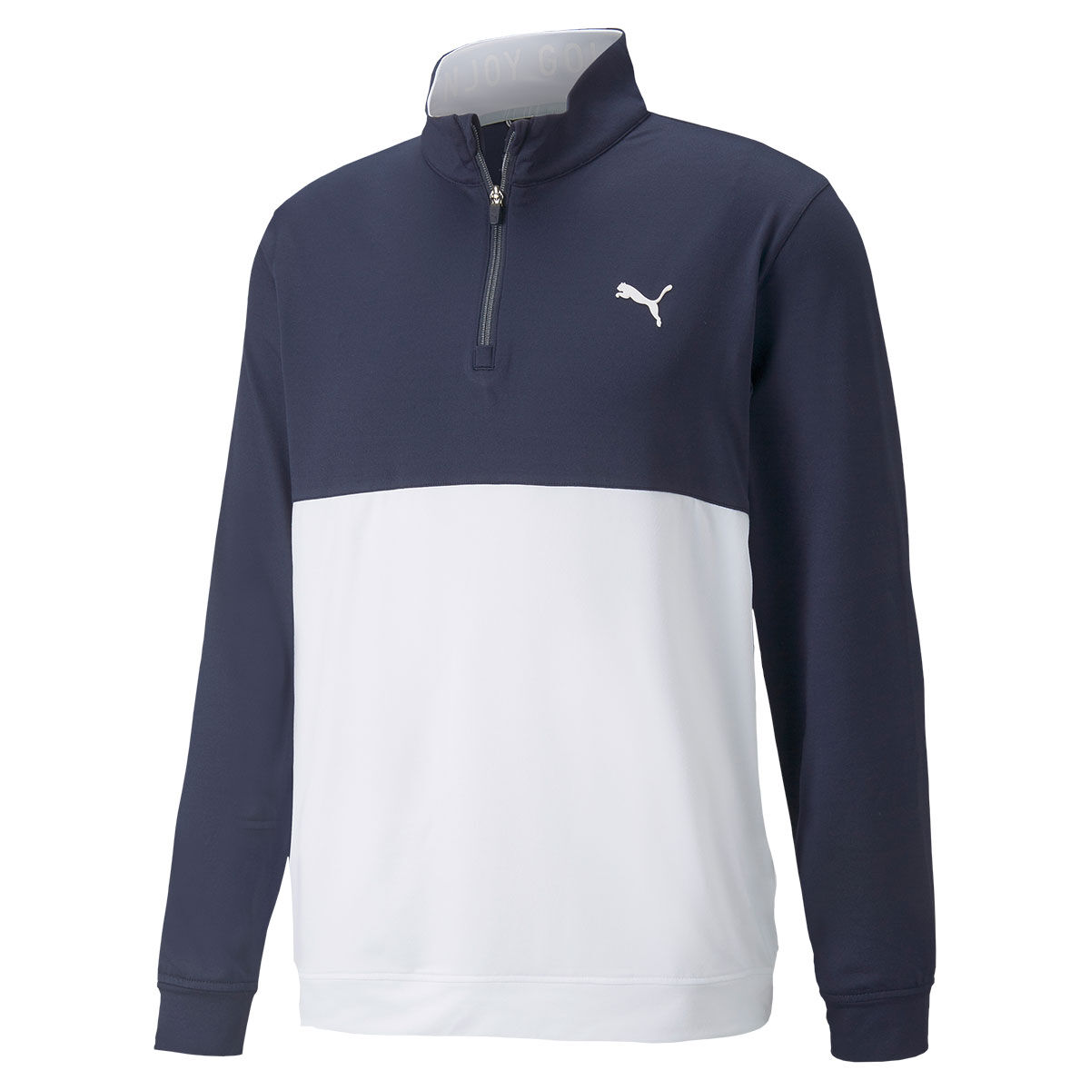 Keep warm and comfortable on the golf course this year in the stylish PUMA Golf layer. Performance orientated with a lightweight moisture-wicking fabric and 4-way stretch to give your game a boost in performance. Perfect for extra warmth on chilly days on the golf course, with a 1/4 zip opening for adjustability, and highlighted with a PUMA Cat logo on the lest chest..