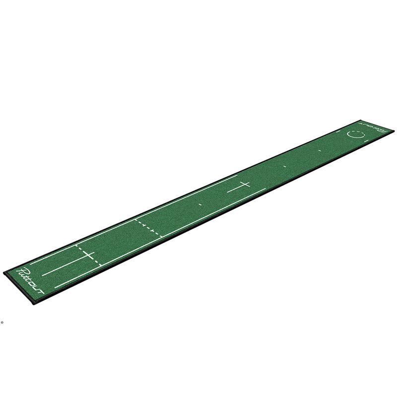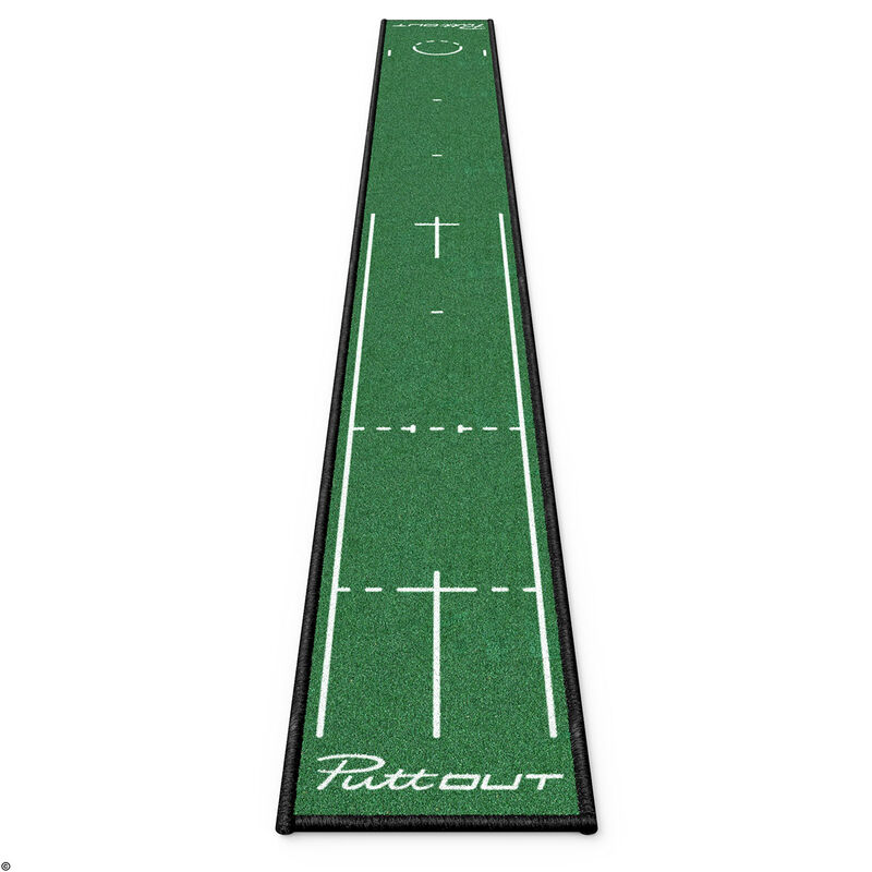 Practise makes perfect, with the highly durable and portable PuttOUT putting mat. This nylon mat with heavy-duty rubber backing ensures you can practice your putting anytime and anywhere. The mat has a stimpmeter reading of 10, to replicate a medium to fast-paced green, with alignment lines, markers, and target hole.