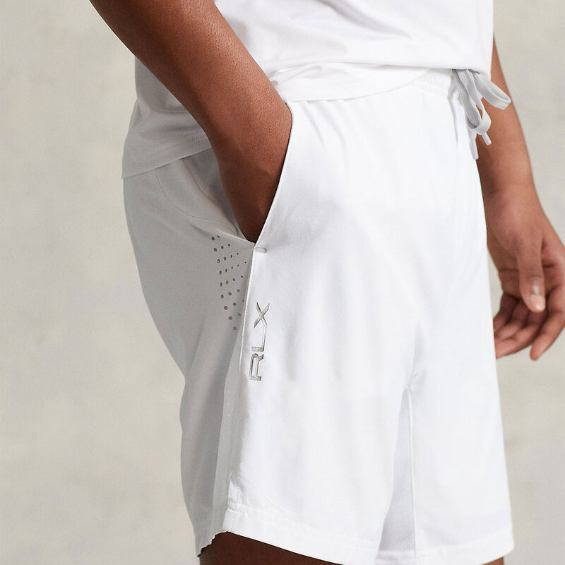 Designed for athletic performance these Ralph Lauren golf shorts are made with lightweight stretch fabric for freedom of movement. The material is moisture-wicking with laser perforations to keep you cool, dry and comfortable as you play golf. They are built with compression-jersey shorts on the interior and feature a reflective RLX logo on the outside for maximum appeal.