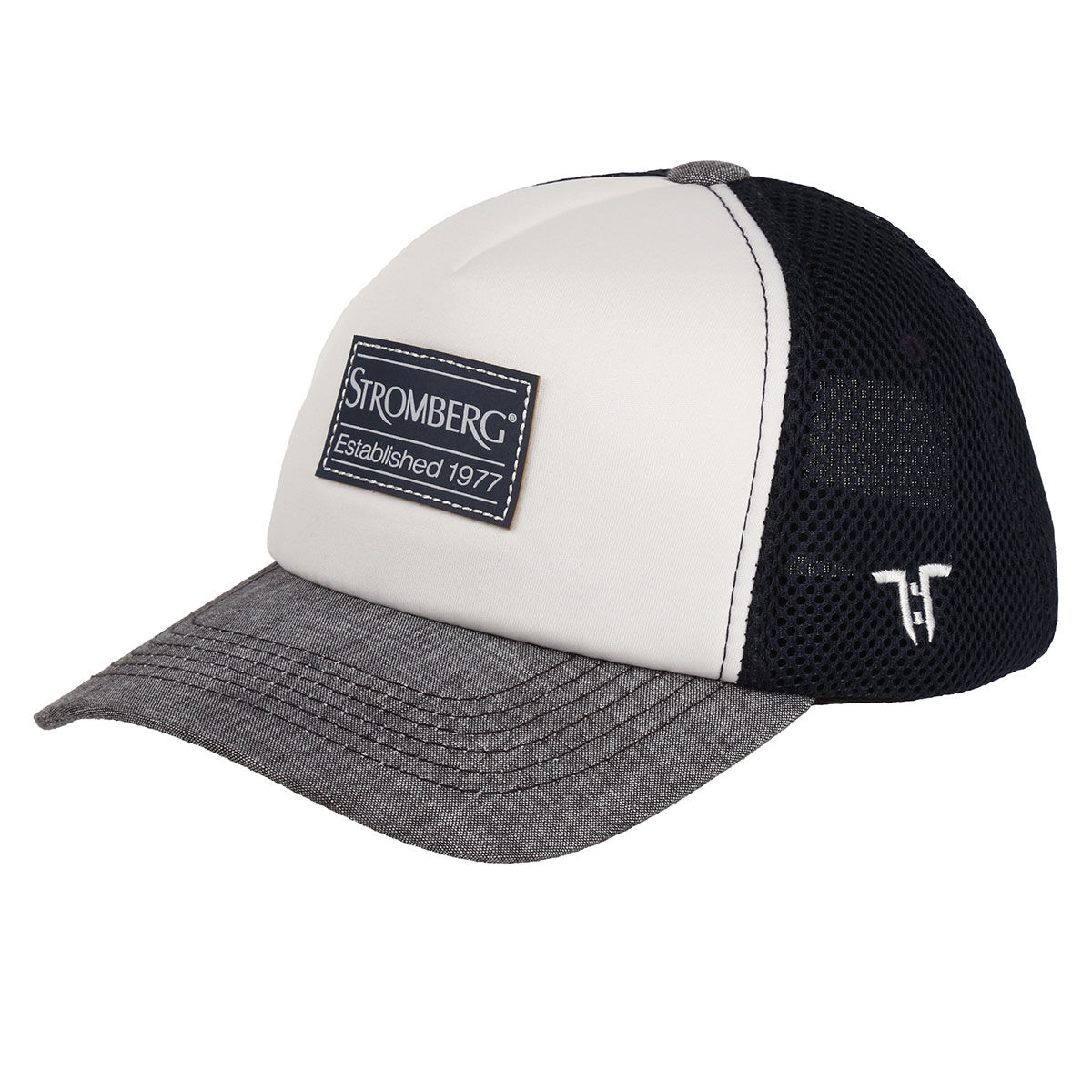 This stylish Stromberg trucker golf cap has a performance construction with breathable mesh panels to keep you cool and comfortable as you play golf. It features the snapback closure system for easy adjustment and is highlighted with a printed logo felt patch for added distinction.
